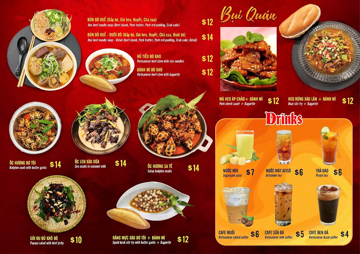 BỤI QUÁN offers a menu rooted in authentic Vietnamese flavors that balances comforting soups, fresh ingredients, and thoughtfully prepared small plates. The selection feels approachable and well-suited for casual gatherings or a relaxed lunch, where generous portions and warm broths invite lingering moments around the table.